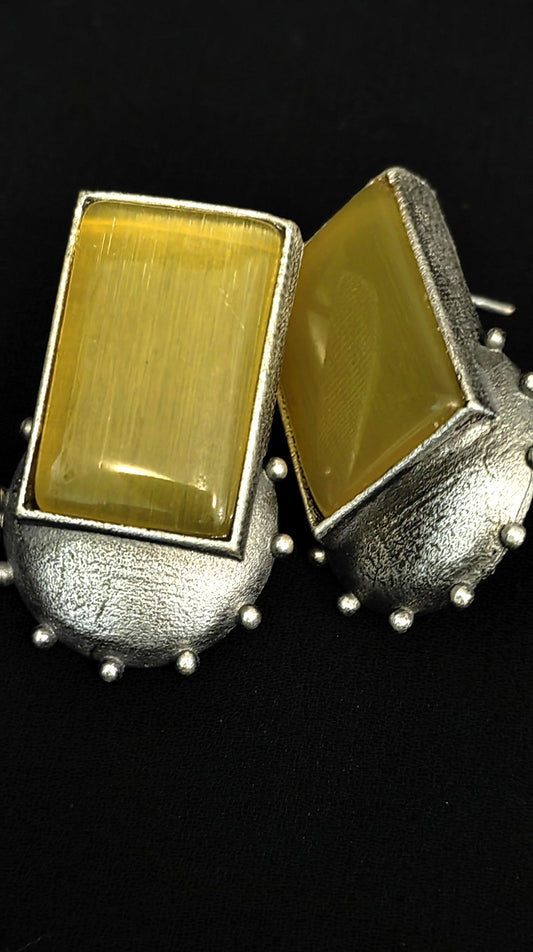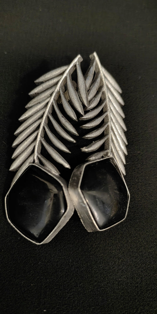 Summer Chic: Stunning Brass Leafy Earrings Paired with Pentagon-Shaped Stones