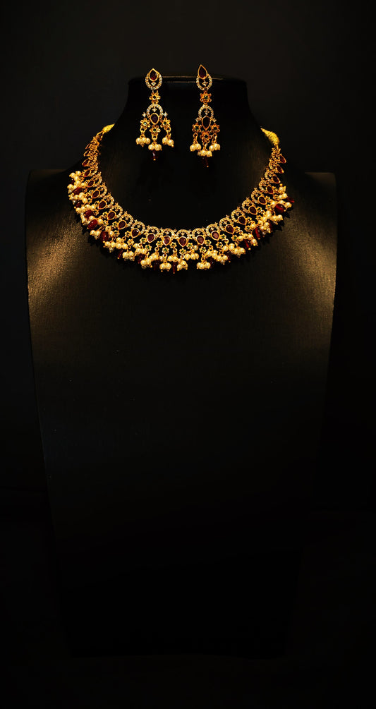 A beautiful Antique Maroon color Choker Necklace set with Earring