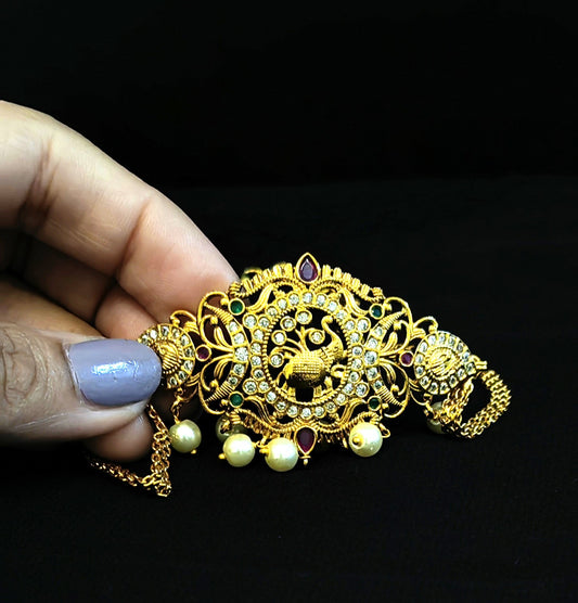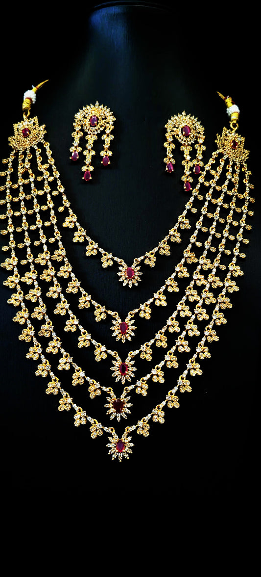 Regal Radiance: Five-Layered Bridal Temple Ensemble with Earrings
