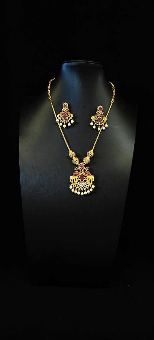 Temple set: Adjustable necklace set with earrings in chain and pendant style.