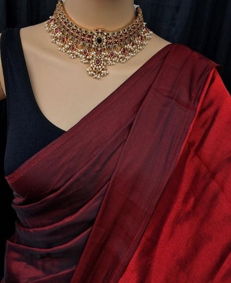NASHA (Redish Maroon Malai Silk Plain Saree)