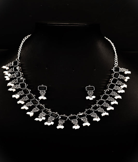 Brass Oxidized Bottle Green Necklace with Jhumka Set