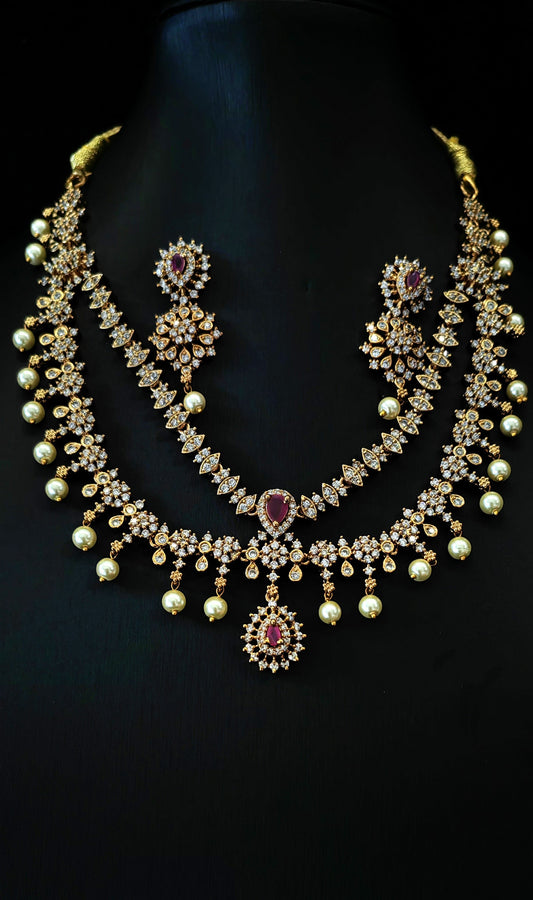 Premium Double-Layered Bridal Necklace with Matching Earrings