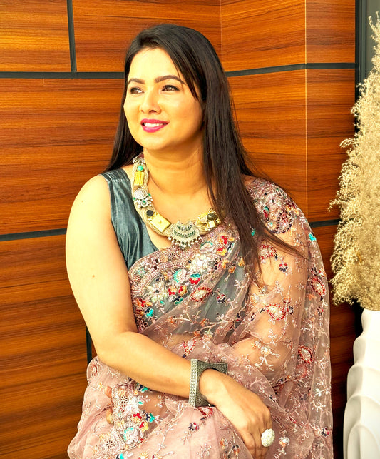 Elegant Brass Choker Necklace with Monalisa Stones and Beads