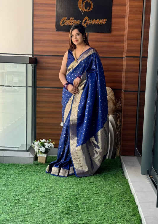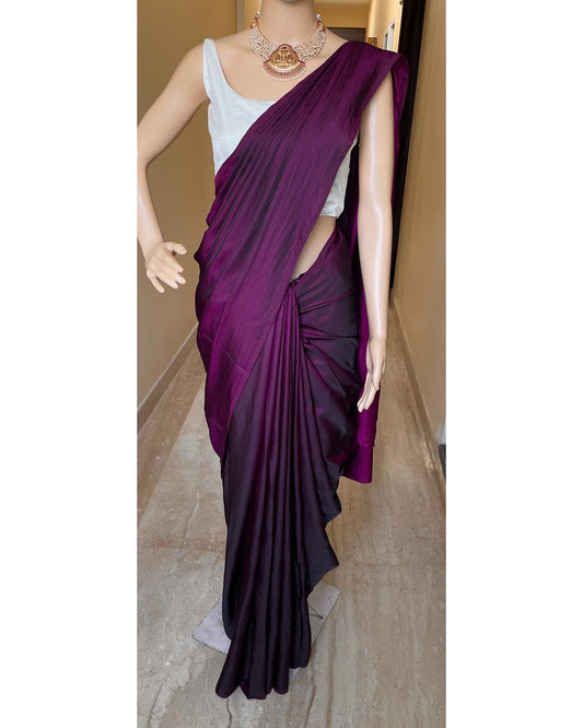 Nasha (Brown Blue Malai Silk Plain Saree)