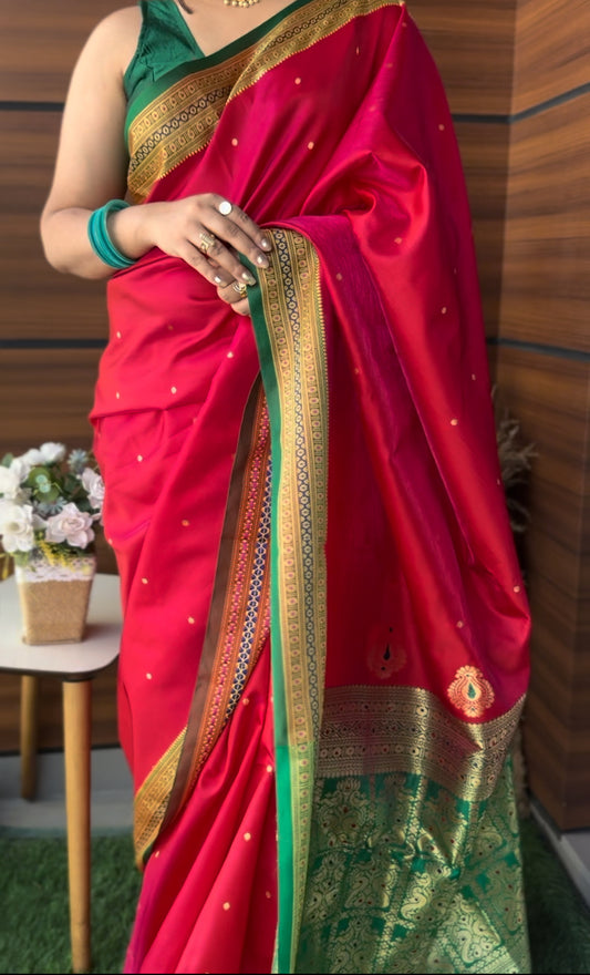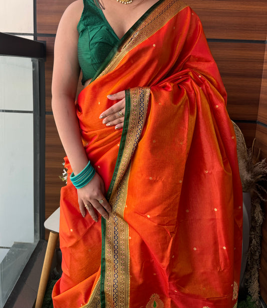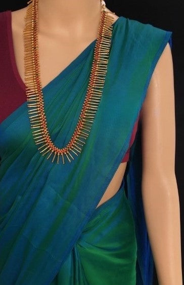 Nasha (Peacock Green Malai Silk Plain Saree)