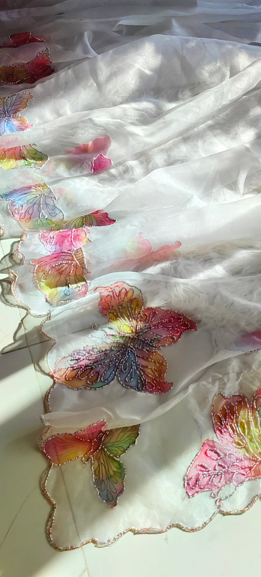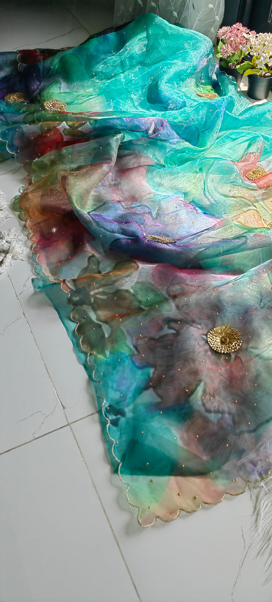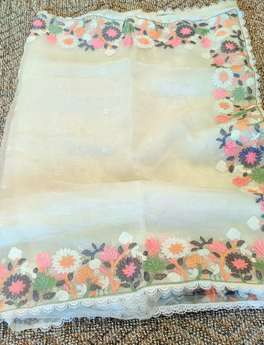 Beautiful Chiffon Multi Thread Embroidery Work Sarees In White