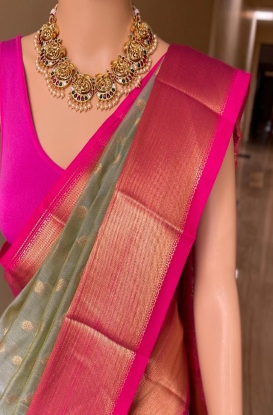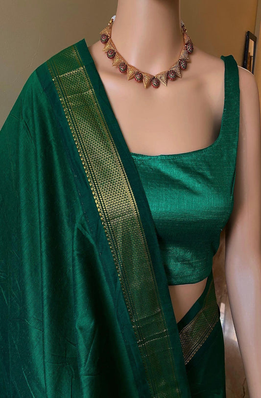 Green Grace Cotton Saree with zari border